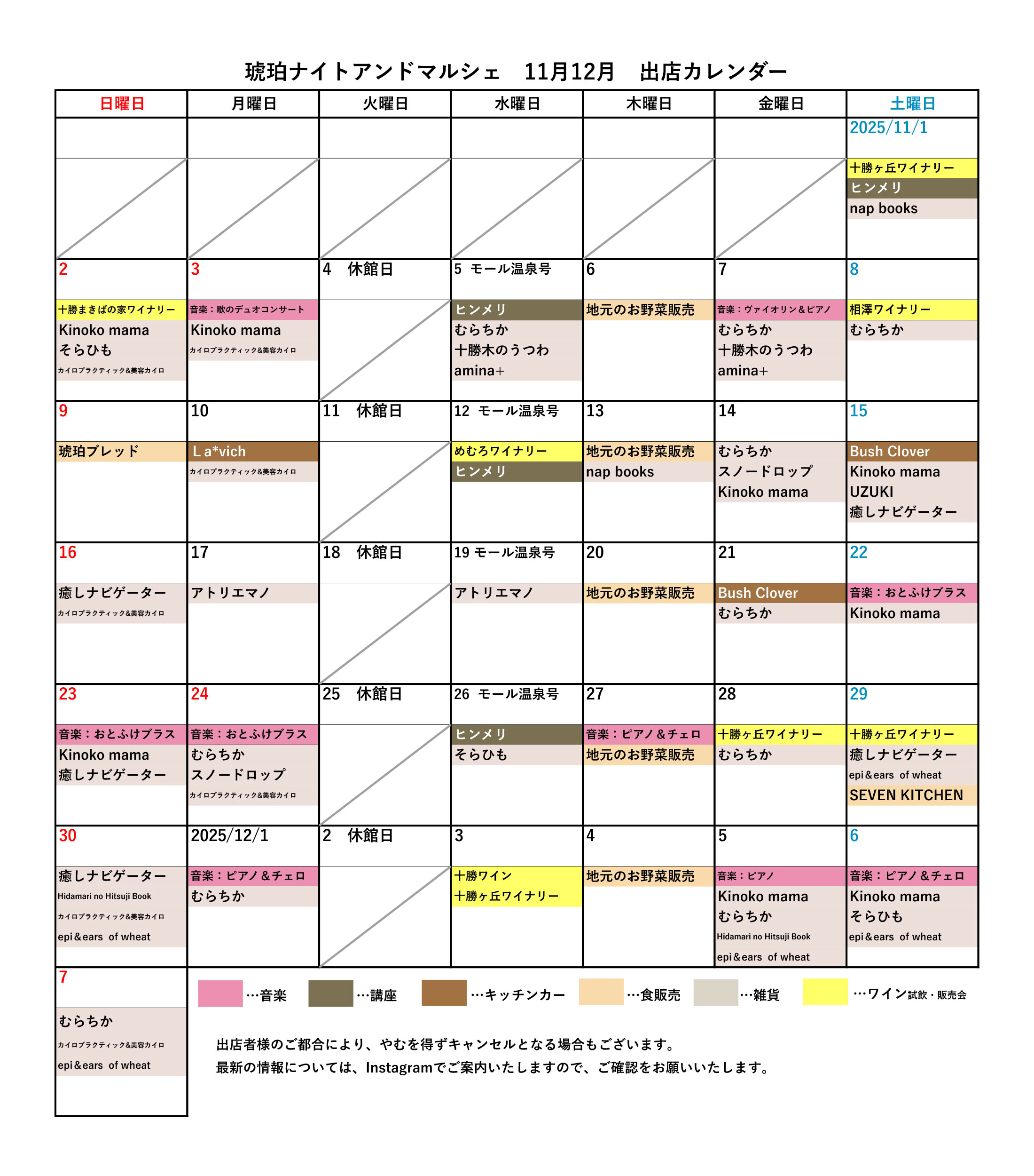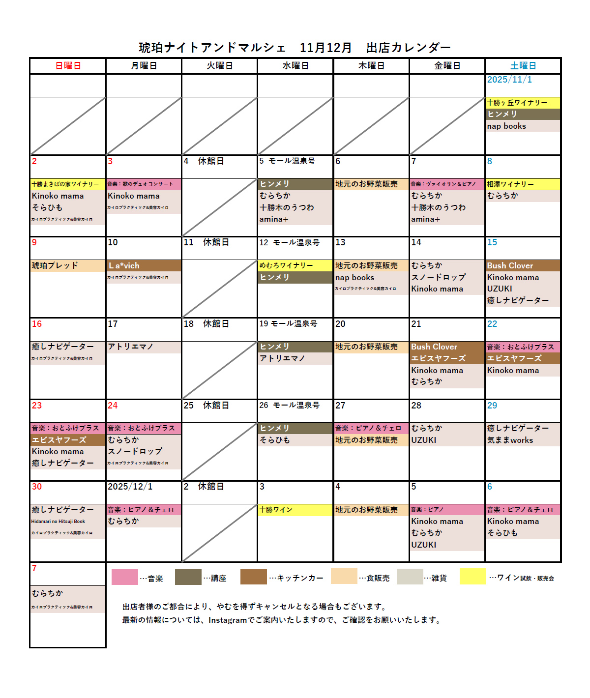 インスタグラム「十勝川温泉琥珀ナイトアンドマルシェ」でお知らせさせていただきます。